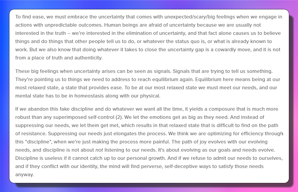 Restriction when the goal is maximizing basic physical growth, and allowance when the goal is to learn a niche subject deeply — both are forms of discipline. Reflect and change the meaning of discipline as your goals evolve.